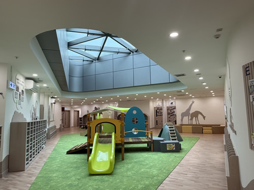 Bright and spacious indoor playground with excellent equipment to develop children's gross motor skills.