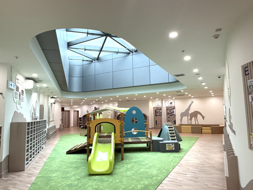 Bright and spacious indoor playground with excellent equipment to develop children's gross motor skills.