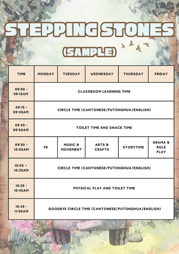 Through purposeful play and interactive learning experiences, Stepping Stones encourages children to explore, inquire, and build foundational skills that support their agency, curiosity, and confidence. We believe this programme will provide a meaningful first step in their lifelong learning journey.